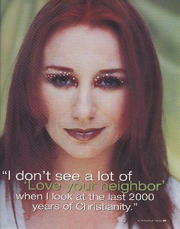 "I believe in the Great Spirit," Tori says of her personal religious beliefs. "I believe Mohammed exists; I believe in Buddha; I believe in Aphrodite; I believe in Rhiannon. All these beings exist. But the Christian God - he's a bit cheeky. I do hang out with him a lot, and I bring my grievances to him. Everybody has their own relationship with the divine, and all these beings are part of the divine.